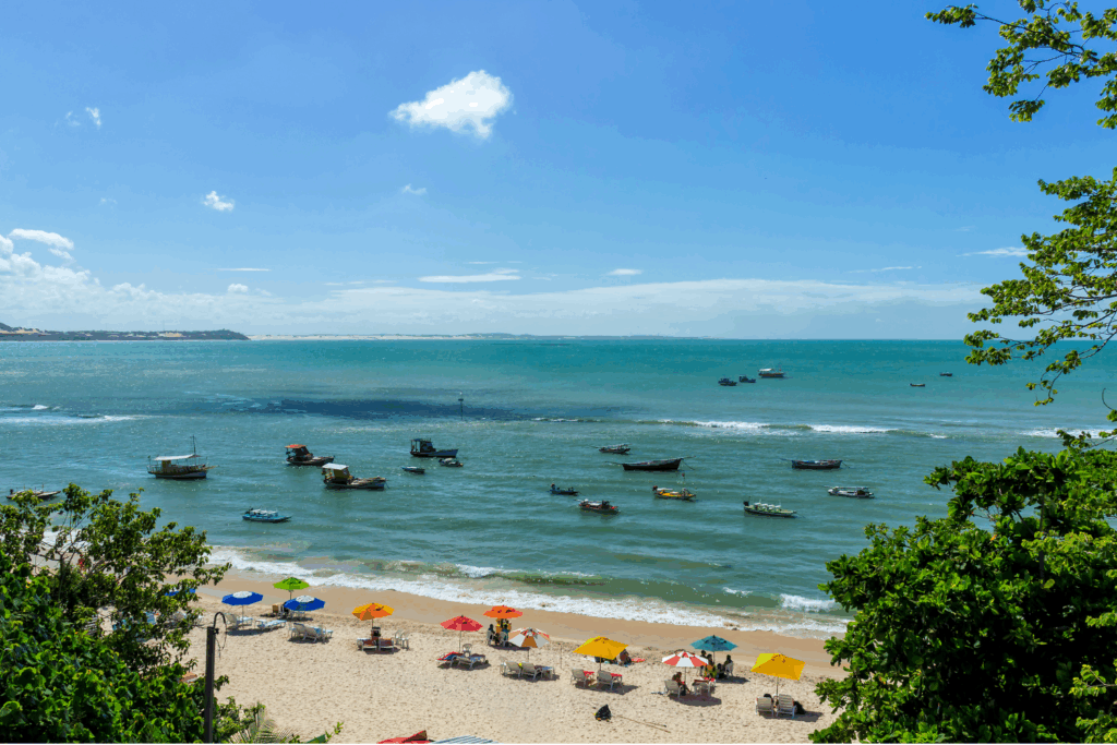 Pipa mistura falésias coloridas, enseadas protegidas e a chance real de ver golfinhos nadando perto da costa. Na maré baixa, formam-se piscinas naturais excelentes para brincar; no centrinho, sorveterias e lojinhas garantem pausas gostosas.